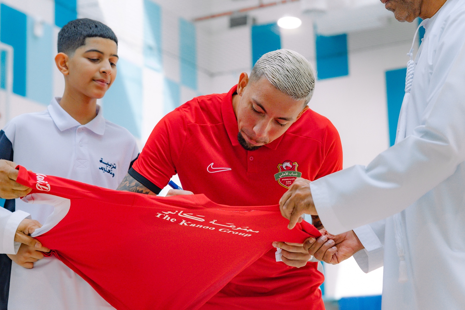 We visited Zayed Educational Complex in Oud Al Muteena with our star player Guilherme Bala and Khaled Alkaabi – First Team Manager where students enjoyed interactive Q&A sessions, fun activities, and unforgettable moments with Al Forsan.