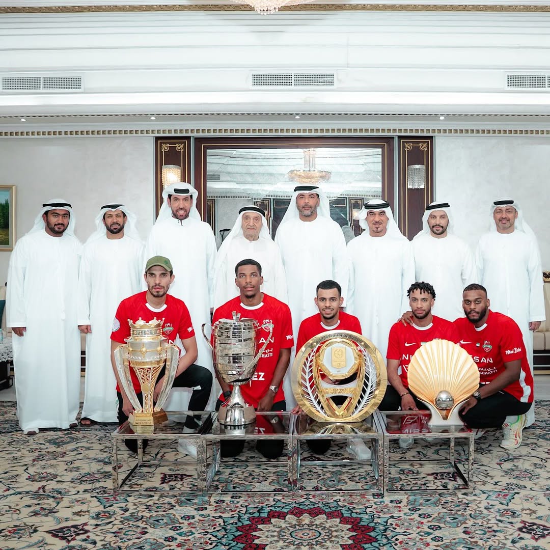 Our first team members were invited by His Excellency Abdulrahman Amin Al-Sharafa, the club’s leader and one of the club pioneers to celebrate the historical achievement by winning four titles in the season.