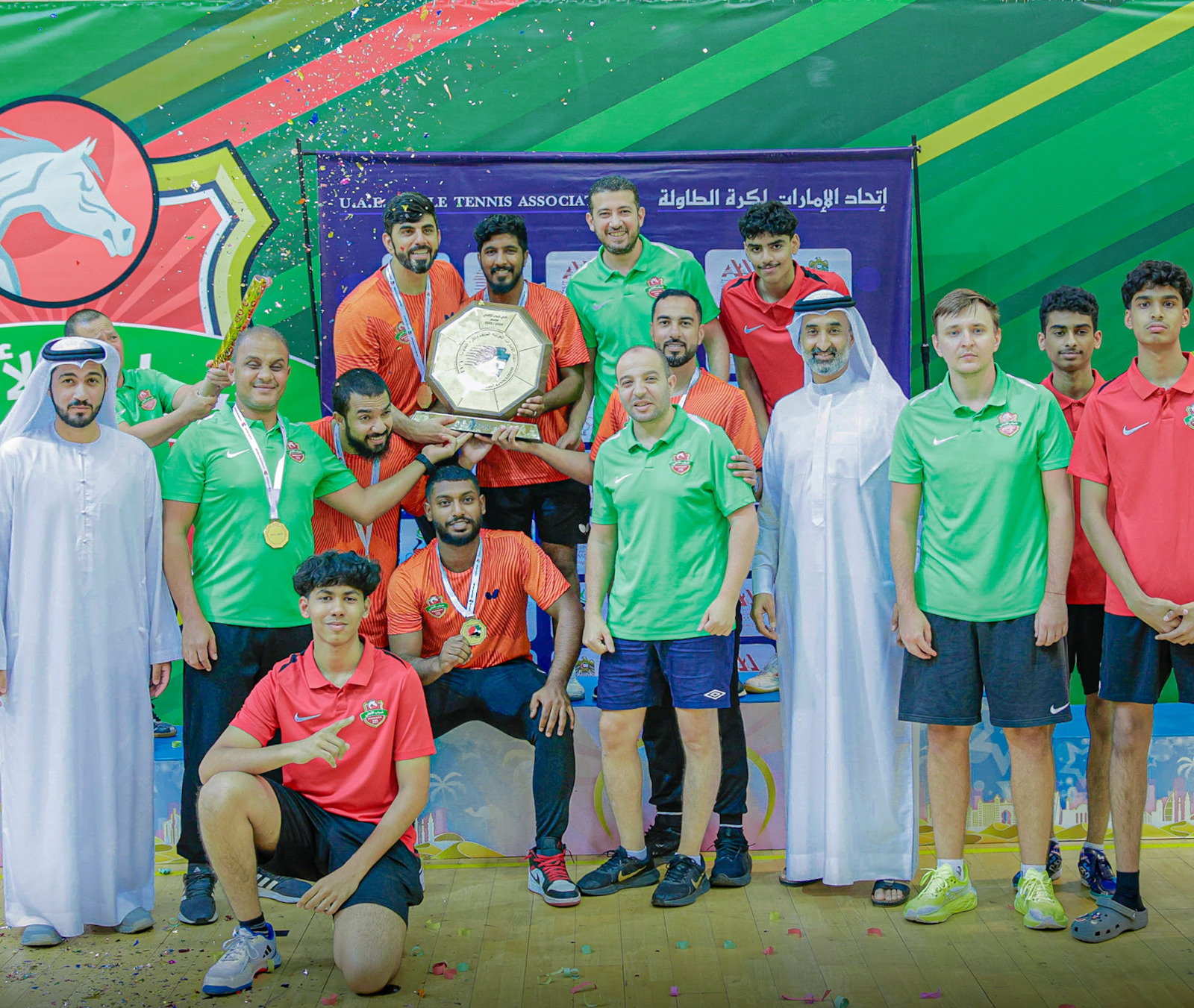 Shabab Alahli crowned champions of the Men Table Tennis League for the current 2024-2025 season, after winning Al-Nasr 4-3 in the final match of the league at Al-Mamzar Hall.